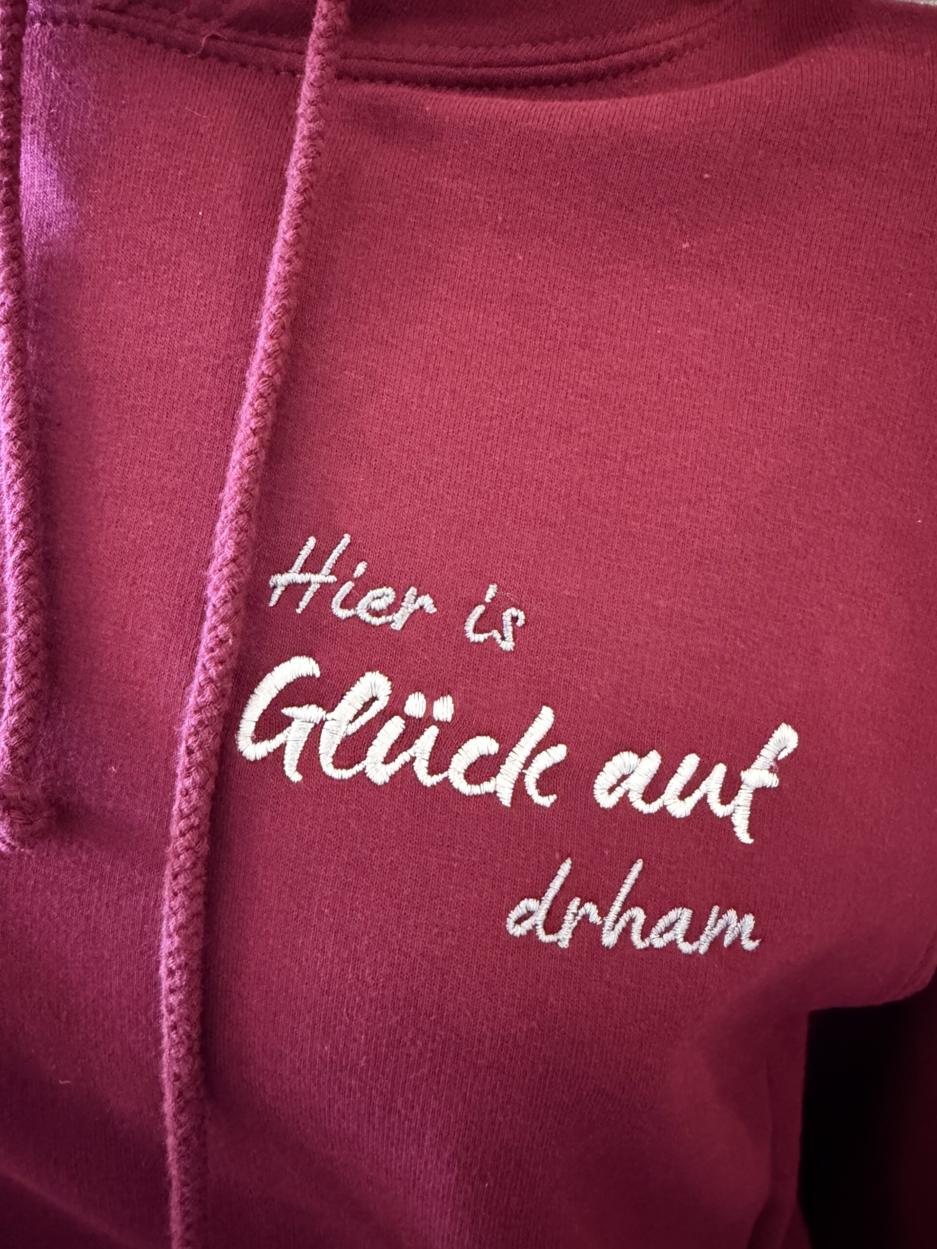 Hoodie / Kapuzen-Sweater / Hier is Glück auf drham! Größe XS