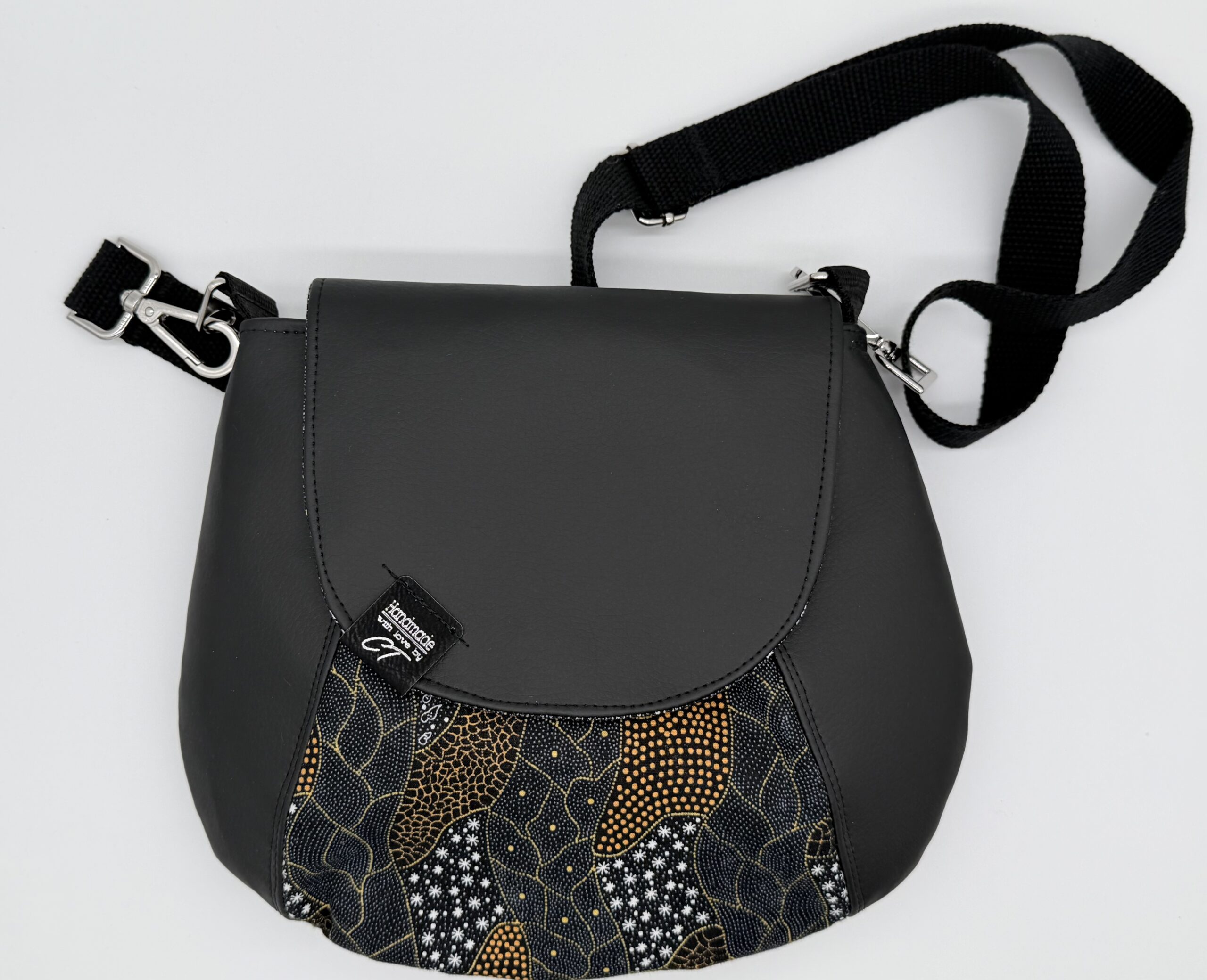 Geben Sie Ihrem Outfit mit diesem liebevoll gefertigtem Einzelstück die persönliche Note! Die kleine Umhängetasche ist durch Farb- und Musterauswahl vielfältig kombinierbar. Sie besticht durch die originelle halbrunde Form und bietet trotz ihrer kleinen Maße genügend Stauraum für das Nötigste. Innen verfügt die Tasche über 2 große Fächer, die durch ein drittes mit Reißverschluss getrennt sind.